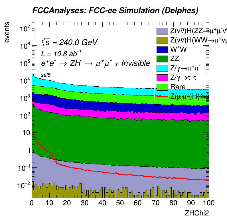 This page saves the plots for FCC Higgs to Invisible study. The selections are: