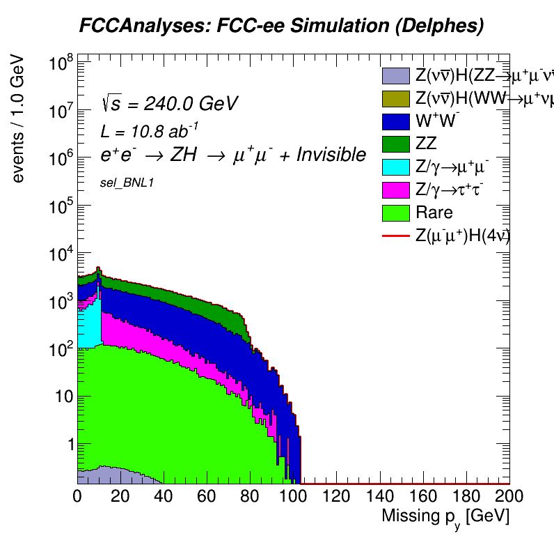 This page saves the plots for FCC Higgs to Invisible study. The selections are: